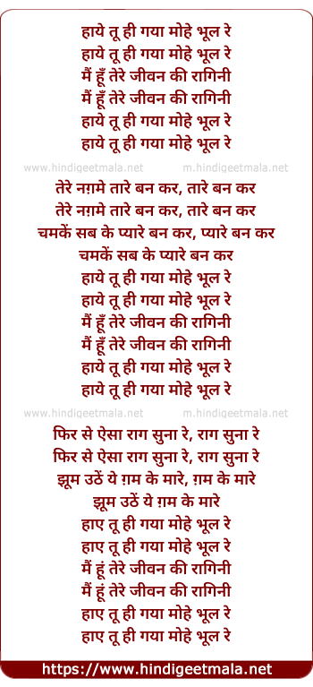 Lyrics of Haye Tu Hi Gayaa Mohe Bhul Re - हाये तू ही गया मोहे भूल रे