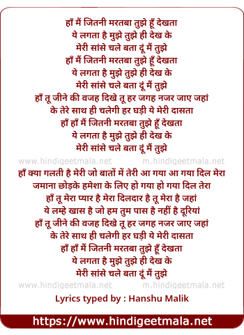 Lyrics of Haan Main Jitni Martaba (Remix) - हाँ मैं जितनी मरतबा तुझे हूँ देखता