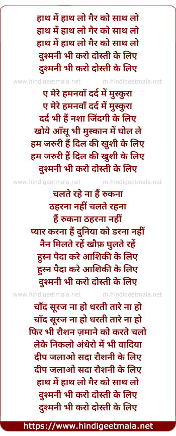 Lyrics of Haath Me Haath Lo Gair Ko Sath Lo - हाथ में हाथ लो गैर को साथ लो