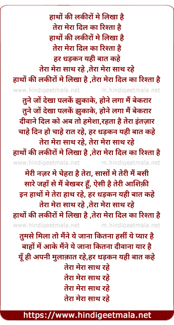 haatho ki lakiro me likha hai, tera mera dil kaa rishta hai