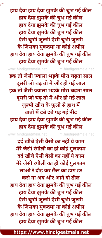 Lyrics of Haye Daiya Jhumke Ki Chub Gayi Keel - हाय दैया झुमके की चुभ गई कील