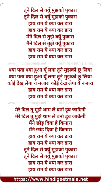 Lyrics of Haay Raam Yeh Kya Kar Daara - 2 - हाय राम ये क्या कर डारा