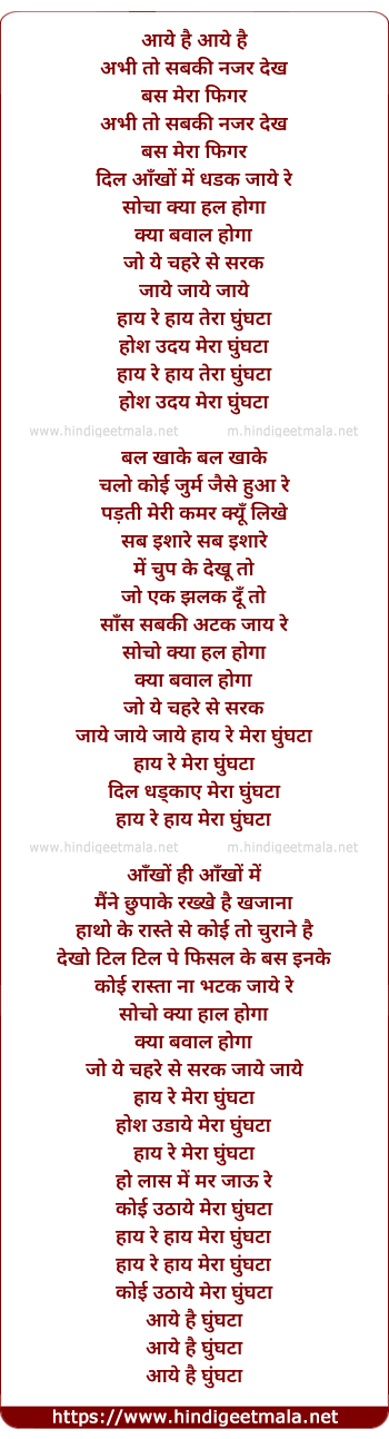 Lyrics of Haay Re Haay Mera Ghunghta - हाय रे हाय मेरा घुंघटा