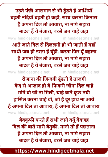 Lyrics of Hai Apna Dil Toh Awara (Title Song) - उड़ते पंछी आसमान से भी ढूँढते हैं आशियाँ