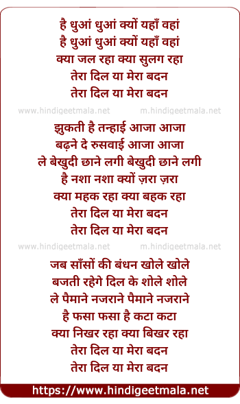 Lyrics of Hai Dhuan Dhuan Kyo