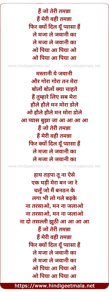 Lyrics of Hai Jo Teri Tamanna - हैं जो तेरी तमन्ना
