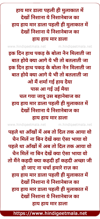 Lyrics of Haye Maar Dala Pehli Mulaqat Me - हाय मार डाला पहली मुलाकात में