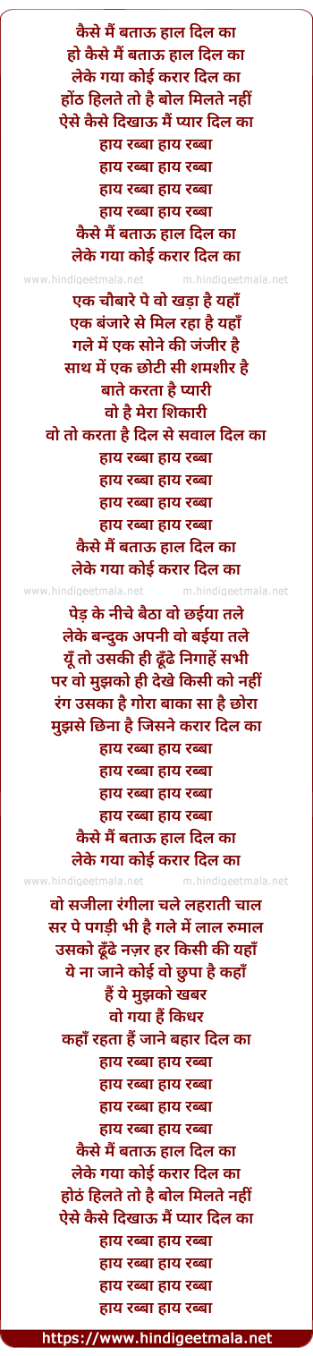 Lyrics of Haye Rabba Haye Rabba - हाय रब्बा हाय रब्बा