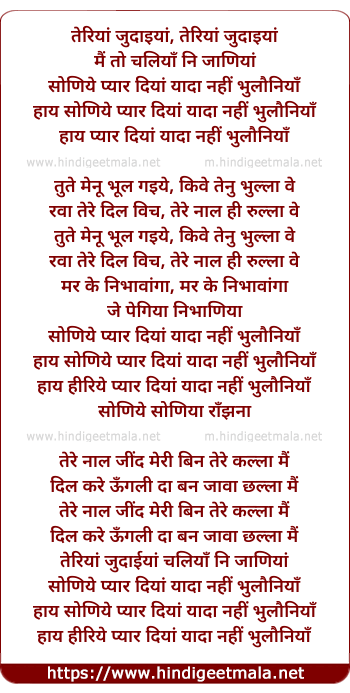 Lyrics of Hai Soniye Hai Soniye - तेरियां जुदाइयां, तेरियां जुदाइयां