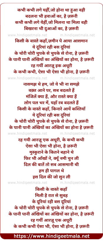 kabhi kabhi lage yehi jo hona tha hua wahi