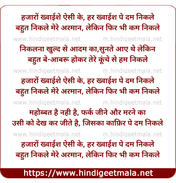 Lyrics of Hajaro Khwahishe Aisi Ke - हजारों ख्वाईशे ऐसी के