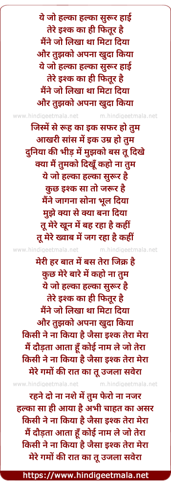 Lyrics of Halka Halka (Album) - हल्का हल्का