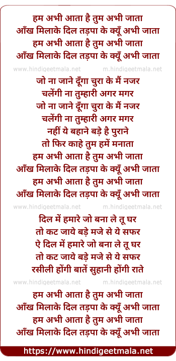 Lyrics of Ham Abhi Aata Tum Abhi Jata - हम अभी आता तुम अभी जाता