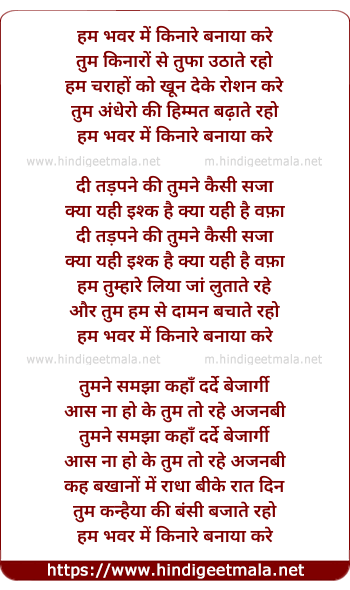Lyrics of Ham Bhawar Me Kinare Banaya Kare - हम भवर में किनारे बनाया करे