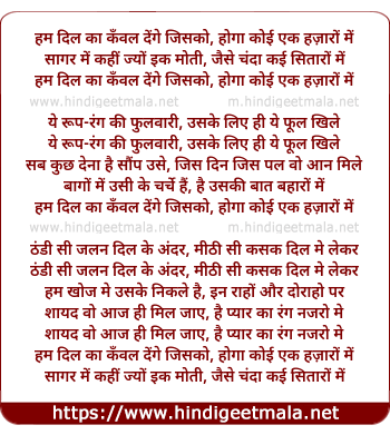 Lyrics of Ham Dil Ka Kanval Denge Jisko Hoga Koi Ek Hazaro Me - हम दिल का कँवल देंगे जिसको, होगा कोई एक हज़ारों में
