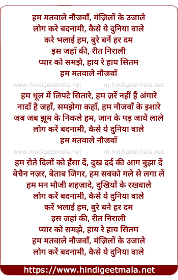 Lyrics of Ham Matvale Naujavan, Manzilon Ke Ujale - हम मतवाले नौजवाँ, मंज़िलों के उजाले