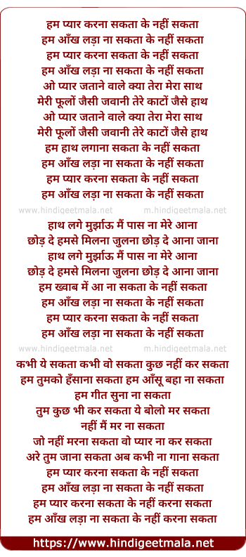 Lyrics of Ham Pyar Karna Sakta, Ke Nahi Sakta - हम प्यार करना सकता, के नहीं सकता