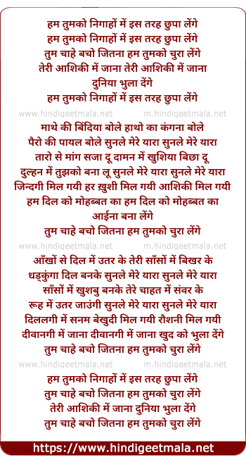 Lyrics of Ham Tumko Nigaho Me Iss Tarah Chupa Lenge - हम तुमको निगाहों में इस तरह छुपा लेंगे