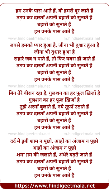 Lyrics of Ham Unake Paas Aate Hain, Woh Hamse Dur Jaate Hain - हम उनके पास आते हैं, वो हमसे दूर जाते हैं