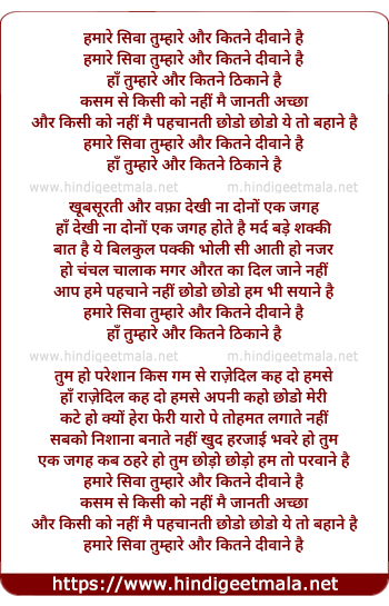 Lyrics of Hamaare Sivaa Tumhaare Aur Kitane Divaane Hain - हमारे सिवा तुम्हारे और कितने दीवाने है