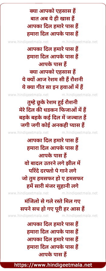 Lyrics of Hamara Dil Apke Paas Hai - हमारा दिल आपके पास हैं