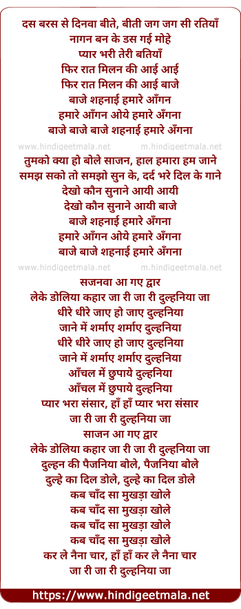 Lyrics of Hamare Angana Oye Hamare Angana - हमारे आँगन ओये हमारे अँगना