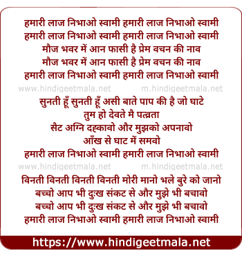 Lyrics of Hamari Laaj Nibhao Swami - हमारी लाज निभाओ स्वामी हमारी लाज निभाओ स्वामी