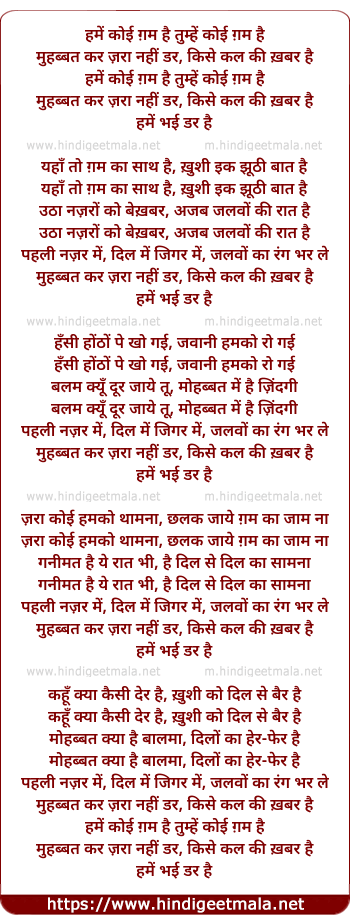 Lyrics of Hame Koyi Gum Hai Tumhe Koyi Gum Hai - हमें कोई ग़म है तुम्हें कोई ग़म है