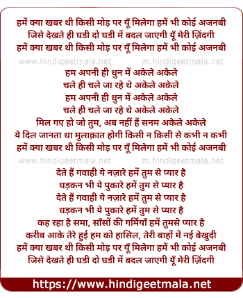 Lyrics of Hame Kya Khabar Thi Isi Mod Par Yu - हमें क्या खबर थी किसी मोड़ पर यूँ