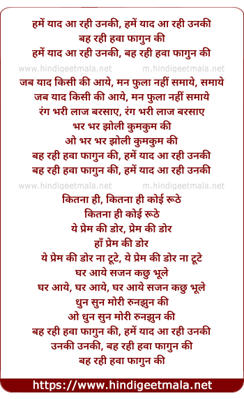 Lyrics of Hame Yaad Aa Rahi Unki - हमें याद आ रही उनकी,