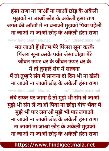 Lyrics of Hansa Rana Na Jao Chod Ke - हंसा राणा ना जाओं छोड़ के