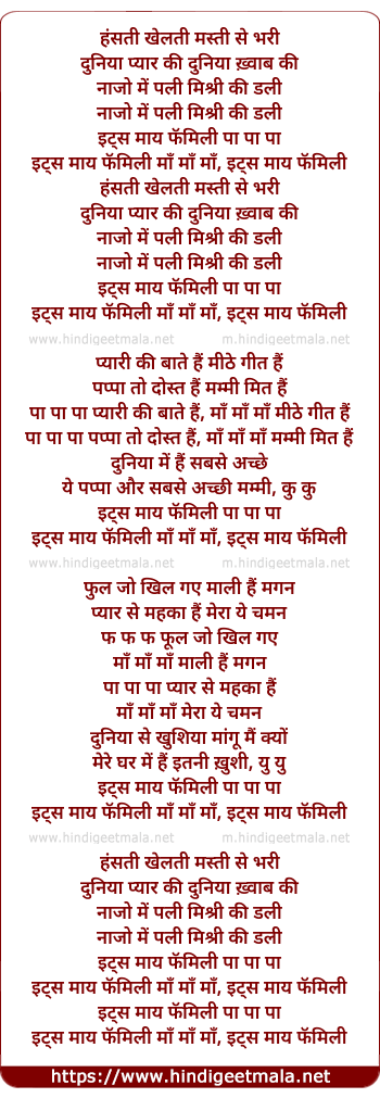 Lyrics of Hansati Khelati Masti Se Bhari, Its My Family - हंसती खेलती मस्ती से भरी,इट्स माय फॅमिली