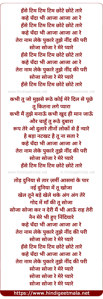 Lyrics of Hanse Tim Tim Tim Chhote Chhote Tare, Kahe Chanda Bhi Aaja - हँसे टिम टिम टिम छोटे छोटे तारे, कहे चंदा भी आजा