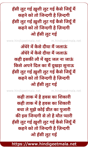 Lyrics of Hansi Lut Gayi Khushi Lut Gayi - हँसी लुट गई ख़ुशी लुट गई