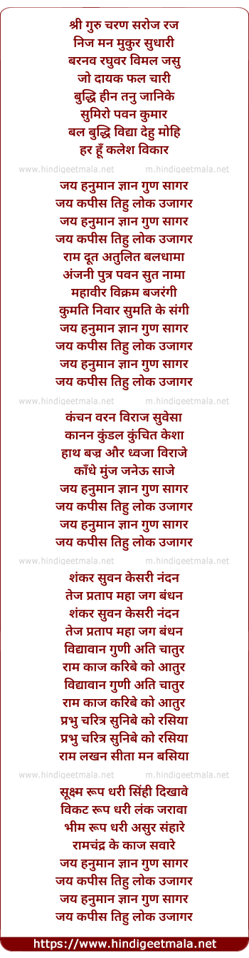Lyrics of Hanumaan Chaalisa - हनुमान चालीसा