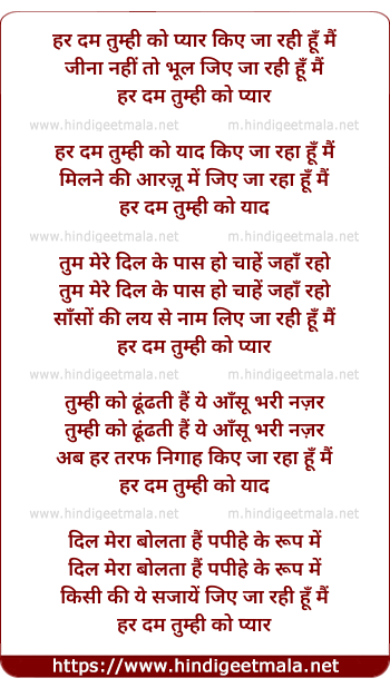 Har Dam Tumhi Ko Pyar Kiye Ja Rahi Hu Mai - हर दम तुम्ही को प्यार किए जा रही हूँ मैं