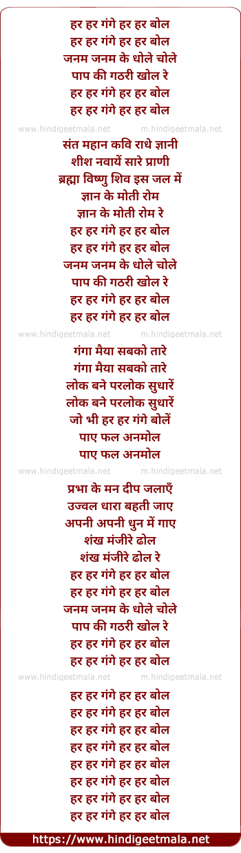 Lyrics of Har Har Gange Har Har Bol - हर हर गंगे हर हर बोल