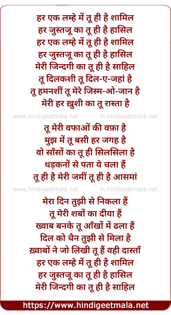 Lyrics of Har Ik Lamhe Mein Tu Hi Hai Shamil - हर एक लम्हे में तू ही है शामिल