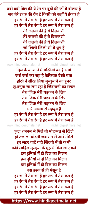 Lyrics of Har Rang Me Tera Rang - हर रंग में तेरा रंग