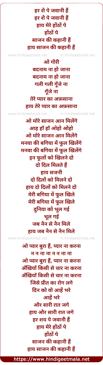 Lyrics of Har Shai Pe Jawani Hai - हर शै पे जवानी हैं