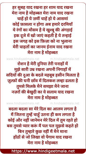 mera nam hai mohabbat mera nam yad rakhna
