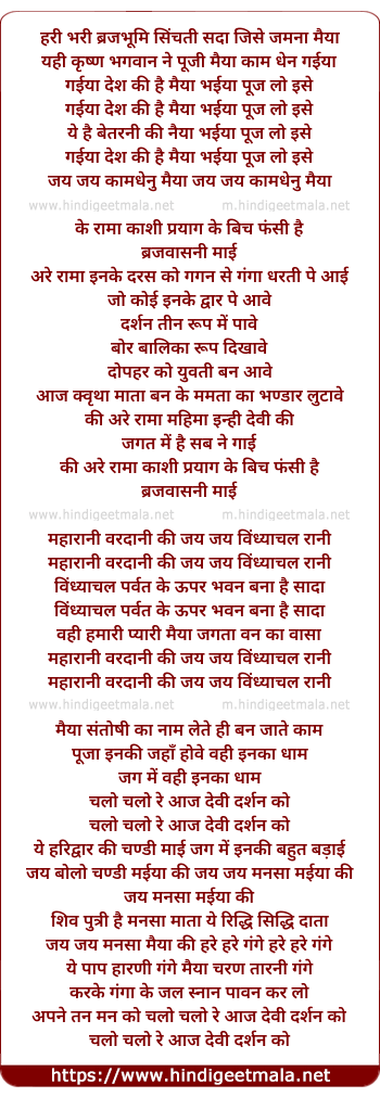 Lyrics of Hari Bhari Brajbhumi Seenchti - हरी भरी ब्रजभूमि सिंचती