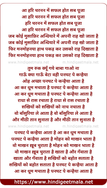 Lyrics of Hari Charanan Men Safal Hot, Panaghat Pe Kanhayyaa Aataa Hai - आ
