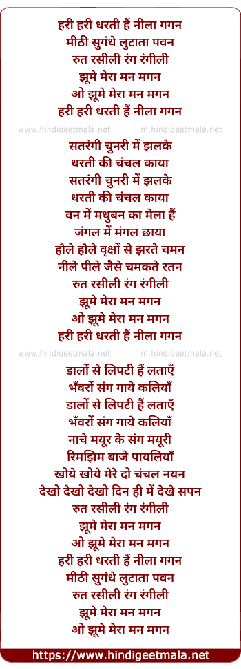 Lyrics of Hari Hari Dharti Hai Neelaa Gagan - हरी हरी धरती हैं नीला गगन