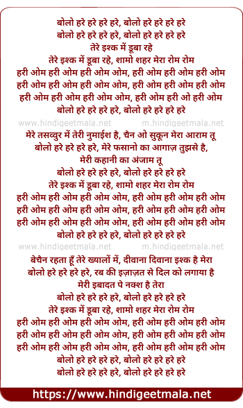 Lyrics of Hari Om Hari Om, Tere Ishq Me Duba Rahe (Version 1) - हरी ओम हरी ओम, तेरे इश्क में डूबा रहे