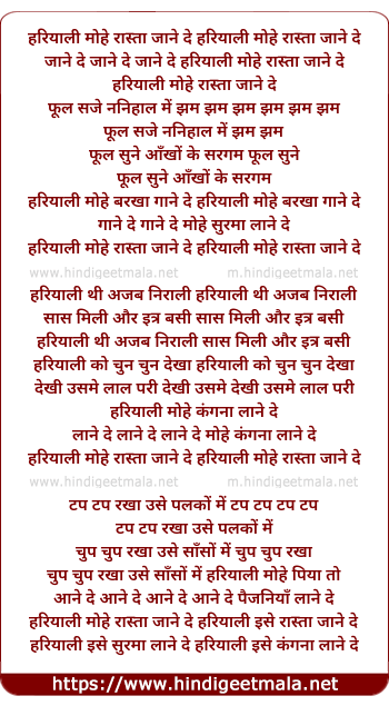 Lyrics of Hariyali Mohe Rasta Jaane De - हरियाली मोहे रास्ता जाने दे
