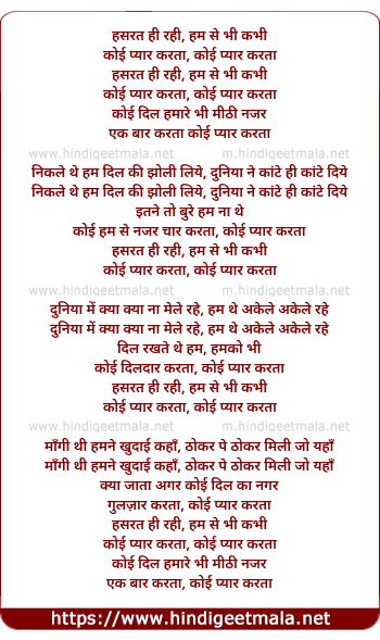 Lyrics of Hasrat Hi Rahi, Hamse Bhi Kabhi - हसरत ही रही, हम से भी कभी