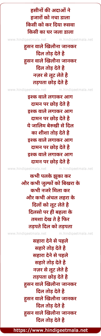 Lyrics of Haseeno Ki Adaao Ne - हसीनो की अदाओं ने