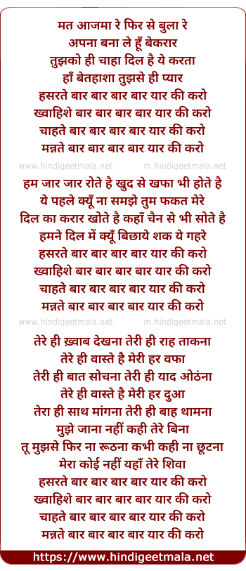 Lyrics of Hasrate Baar Baar - हसरते बार बार