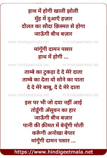 Lyrics of Hath Me Hogi Khali Jholi - हाथ में होगी खाली झोली